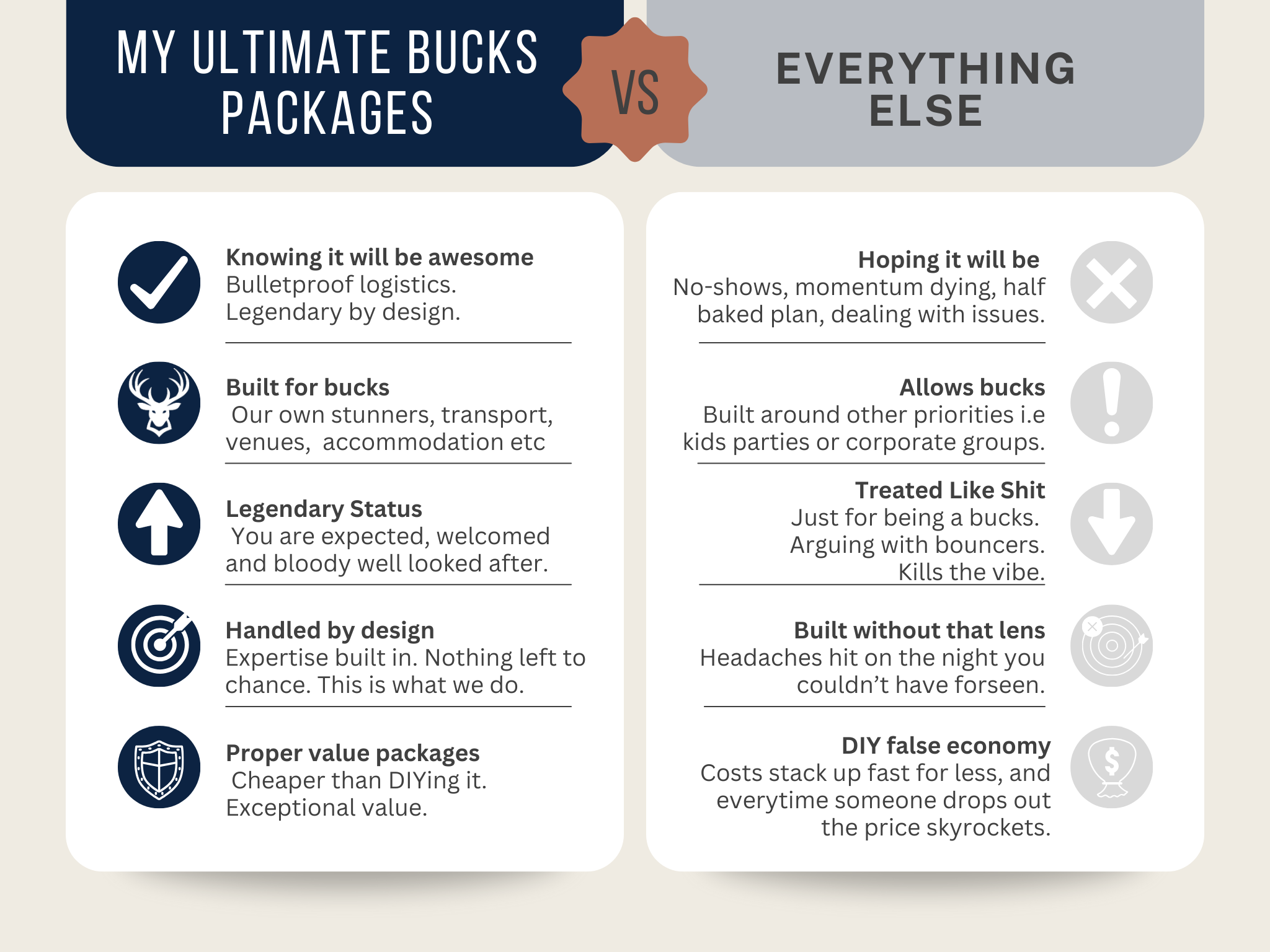 Transport that runs late. Venues that suddenly do not want bucks groups. Entertainment booked through random sites that never turns up. Accommodation that looks fine online and fails in real life.