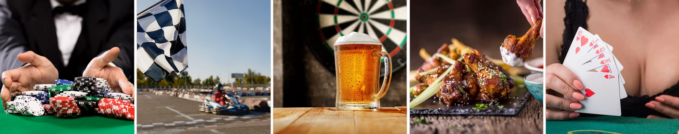 Go karting, supercar driving, quad biking, paintball, axe throwing, bubble soccer, clay shooting, escape rooms, fishing charters, virtual golf, classic arcade games, barefoot bowls and beer.