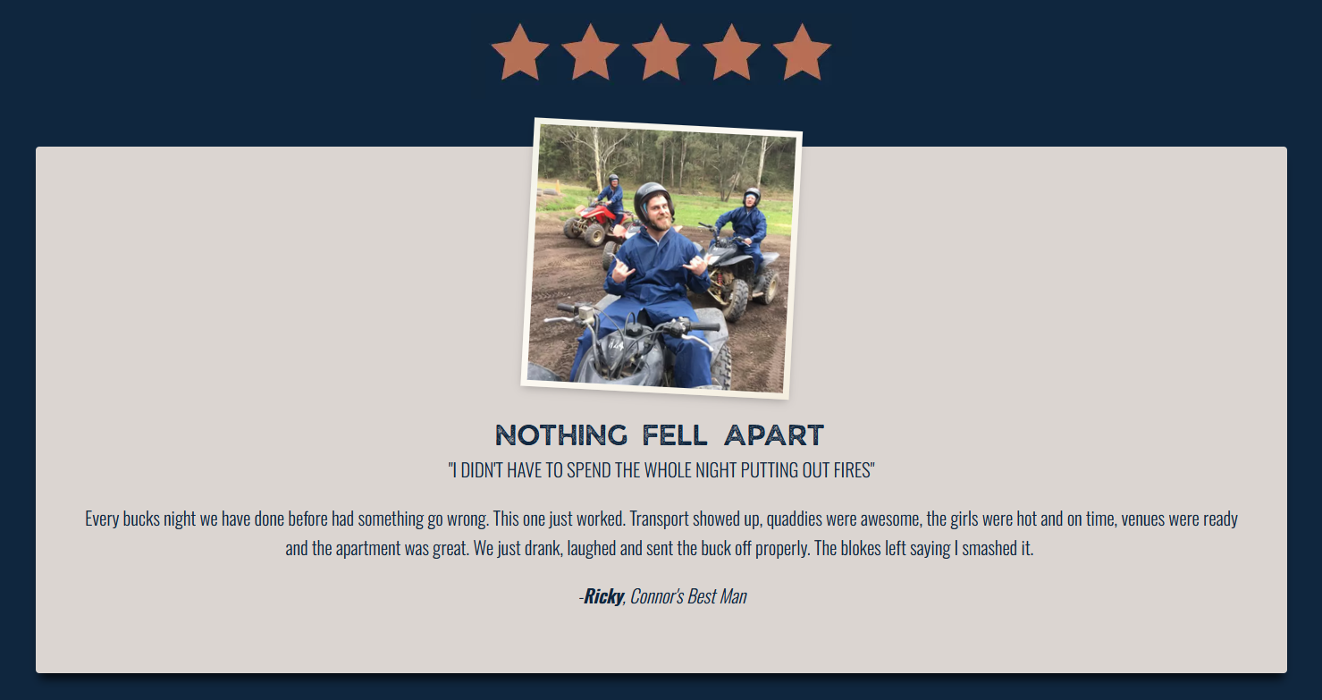 Since 2011, best men across Melbourne, Sydney, Brisbane and the Gold Coast have booked My Ultimate Bucks packages and walked away knowing they made the right call.